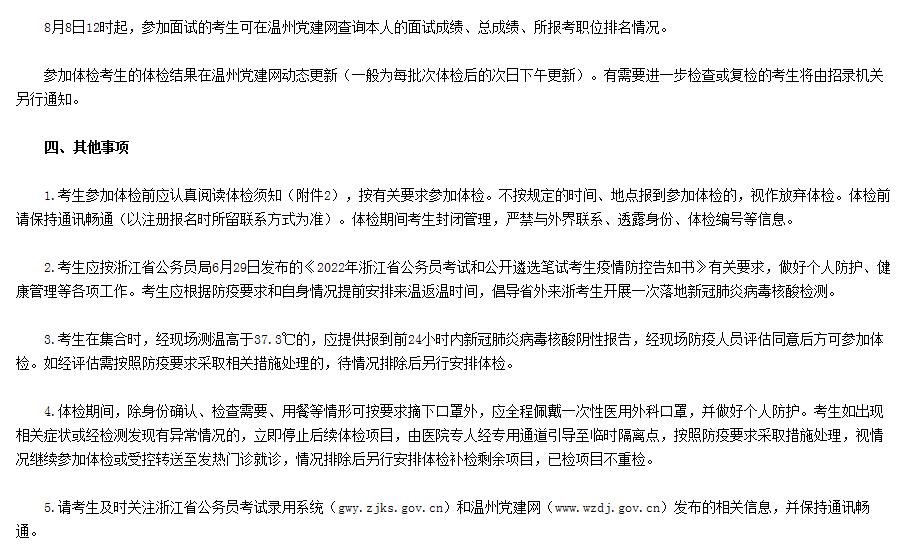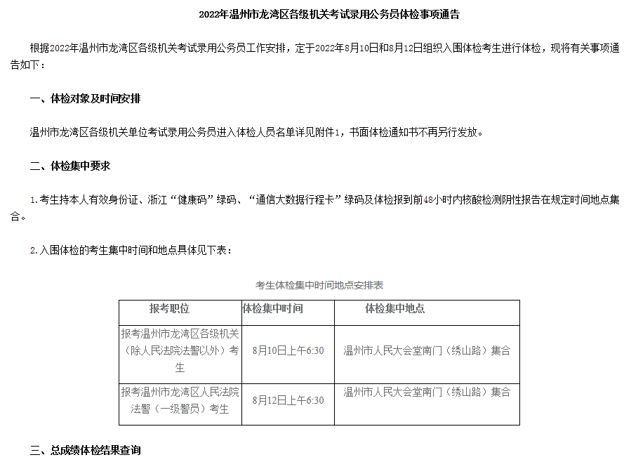 2022年浙江溫州市龍灣區(qū)公務(wù)員考試體檢事項通告