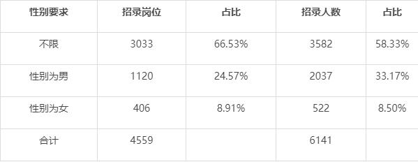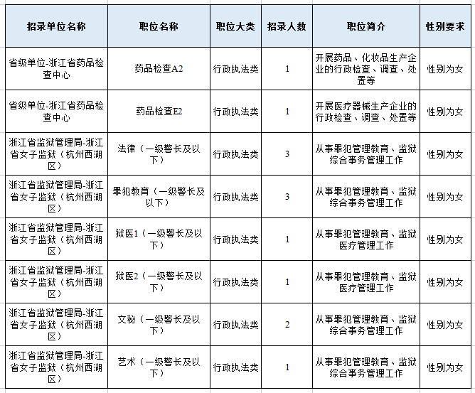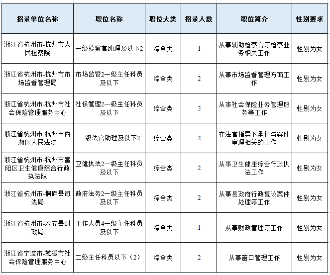 2022年浙江省考各崗位性別要求一覽(不含殘疾人、特警等)