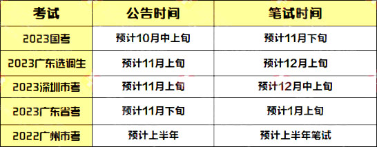 根據(jù)2022年考試時間,給你們整理了一份廣東的五大公務(wù)員考試安排!