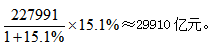 現(xiàn)期值為2014年全部工業(yè)增加值227991億元,未給出2014年相對(duì)2012年的增長(zhǎng)率,但有2014年同比增長(zhǎng)7.0%,2013年增長(zhǎng)7.6%,可利用隔年增長(zhǎng)率的公式求出,即7.0%+7.6%+7.0%×7.6%≈15.1%,再代入增長(zhǎng)量公式得
