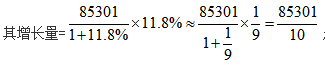 題目給出兩個(gè)相鄰周期的增長(zhǎng)率和現(xiàn)期值,求間期值比基期值的增長(zhǎng)量。