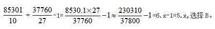 發(fā)現(xiàn)整個(gè)式子中只有整體的增長(zhǎng)率是未知的,而這正是題目讓我們求解的量。接下來(lái),我們?nèi)匀豢梢詫⑦x項(xiàng)代入進(jìn)行排除。很明顯C和D選項(xiàng)代入后計(jì)算結(jié)果為負(fù)數(shù),排除;B選項(xiàng)代入后等號(hào)左側(cè)計(jì)算結(jié)果一定小于15.28%×(48.6%-47.6%)=0.1528%,排除。故選A。