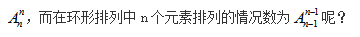 將其推廣至一般情況就有,環(huán)形排列中n個元素排列的情況數(shù)為