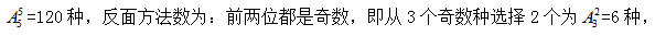 (4)兩個偶數(shù)中至少有一個在前兩個的位置,即包含了有一個或者是兩個均在前兩個位置中,情況較多,不太容易求解,故考慮用間接求解,即總的方法數(shù)-反面方法數(shù)=所求方法數(shù)??偟姆椒〝?shù)為: