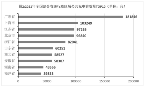B.2021年我國公共充電樁數(shù)量超過5萬臺(tái)的省級(jí)行政區(qū)域有7個(gè)