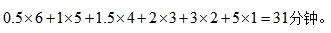 通過觀察上表會發(fā)現(xiàn)0.5出現(xiàn)了三次,1出現(xiàn)了兩次,1.5出現(xiàn)了一次,所以時間總和最短為