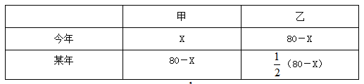 【答案】C【解析】設(shè)甲今年X歲,則乙今年(80-X)歲,根據(jù)題意有如下表格,