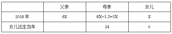 例2:2018年父親年齡是女兒年齡的6倍,是母親年齡的1.2倍。已知女兒出生當(dāng)年(按0歲計算)母親24歲,則哪一年父母年齡之和是女兒的4倍?( )