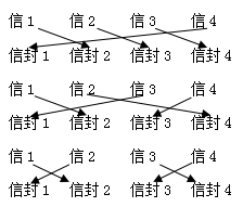 ①當(dāng)信1放入信封2時,如下圖所示: