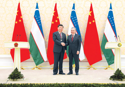 習(xí)近平接受烏茲別克斯坦總統(tǒng)米爾濟(jì)約耶夫授予“最高友誼”勛章