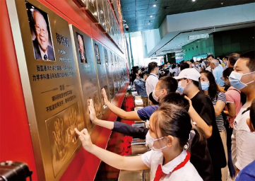 2020年全國(guó)科普日期間,為弘揚(yáng)科學(xué)家精神,中國(guó)科技館與國(guó)家科學(xué)技術(shù)獎(jiǎng)勵(lì)工作辦公室共同實(shí)施“國(guó)家最高科學(xué)技術(shù)獎(jiǎng)獲獎(jiǎng)科學(xué)家手?!表?xiàng)目,采集袁隆平、孫家棟、屠呦呦、黃旭華等國(guó)家最高科學(xué)技術(shù)獎(jiǎng)獲獎(jiǎng)科學(xué)家手模,并錄制寄語(yǔ)視頻。2022年5月,中國(guó)科技館被中國(guó)科協(xié)、教育部、科技部等7部門認(rèn)定為全國(guó)首批“科學(xué)家精神教育基地”。圖為在科學(xué)家“手模墻”前,觀眾們品讀科學(xué)家寄語(yǔ)并與科學(xué)家“擊掌”。中國(guó)科技館供圖
