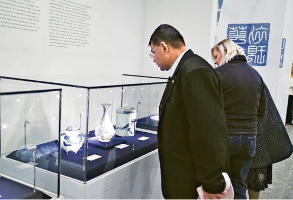 為響應(yīng)“一帶一路”倡議,由上??萍拣^、上海博物館、南海博物館、上海大學(xué)等聯(lián)合策劃推出的“青出于藍(lán)——青花瓷的起源、發(fā)展與交流”特展巡展至“一帶一路”沿線國(guó)家,以科技和文化融合的方式,向公眾展現(xiàn)中國(guó)陶瓷科技發(fā)展成就,向世界講述中國(guó)故事、傳遞中國(guó)聲音。圖為展覽在烏茲別克斯坦展出。中國(guó)科技館供圖