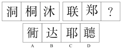 【答案】A【解析】題干圖形相鄰漢字都是左右結(jié)構(gòu),有相同的元素,前一個圖形左半部分與下一個相鄰圖形右半部分元素相同,所以本題選A。
