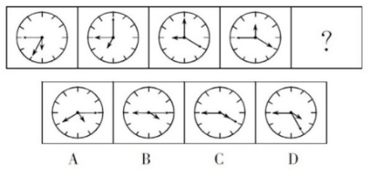 例2:從所給的四個選項中,選擇最合適的一個填入問號處,使之呈現(xiàn)一定的規(guī)性:( )