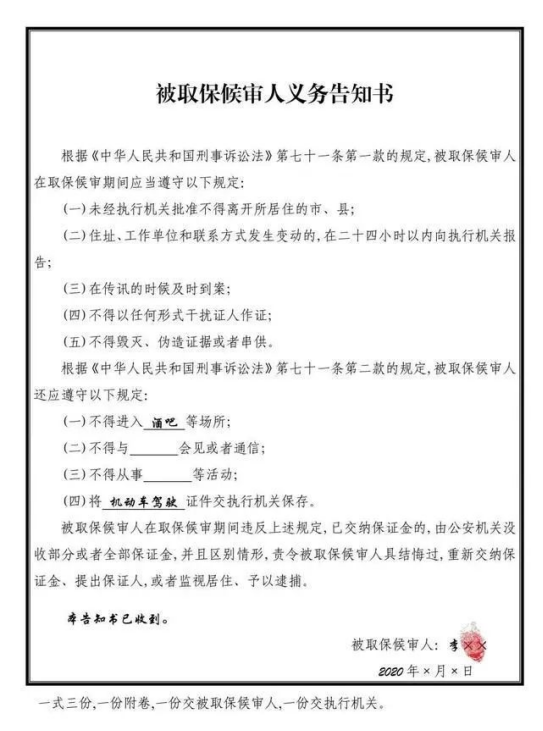 附:被取保候審人義務告知書(模板)制作參考