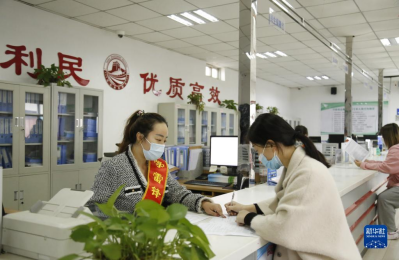 河北省邢臺(tái)市襄都區(qū)宴家屯鎮(zhèn)綜合服務(wù)中心工作人員協(xié)助辦事群眾填寫相關(guān)表格(2022年3月30日攝)。新華社發(fā)(張馳攝)