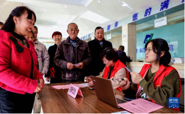 浙江省長興縣呂山鄉(xiāng)金村村級(jí)代辦員為村民登記所需辦理事務(wù),由代辦員統(tǒng)一去縣里為村民代辦(2019年11月20日攝)。呂山鄉(xiāng)金村在村便民服務(wù)中心專門設(shè)立代辦窗口,為村民提供代辦、代繳費(fèi)服務(wù)。新華社記者徐昱攝