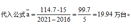 (末期值為2021年114.7萬臺,初期值為2016年15萬臺,n為增長次數(shù)),代入公式