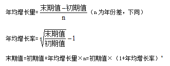 本題求解2015-2019年時間段內(nèi)的年均增長情況;則時間段內(nèi)最初的年份(2015年)即為初期,初期所對應實際量即為初期值(152269億元);時間段內(nèi)最后一年(2019年)即為末期,末期所對應實際量即為末期值(190382億元);時間段內(nèi)增長次數(shù)即為n,增長次數(shù)n等于年份差(2015-2019年增長次數(shù)n=2019-2015=4);