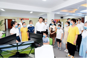 2022年8月16日至17日,中共中央總書記、國(guó)家主席、中央軍委主席習(xí)近平在遼寧考察。這是17日下午,習(xí)近平在沈陽(yáng)市皇姑區(qū)三臺(tái)子街道牡丹社區(qū)群眾活動(dòng)中心,同幸福教育課堂的孩子們親切交流。新華社記者申宏/攝