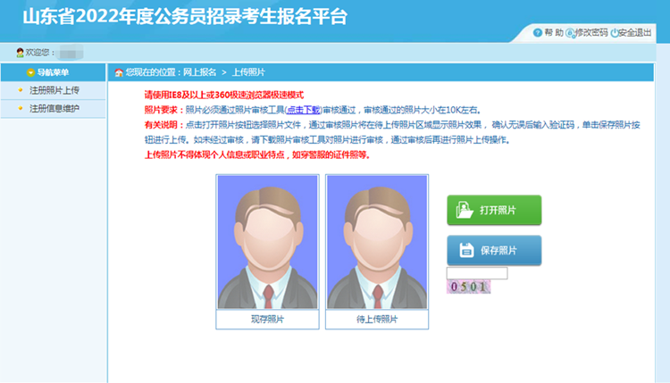 若考生為首次進入系統(tǒng),需上傳照片,頁面如下:
