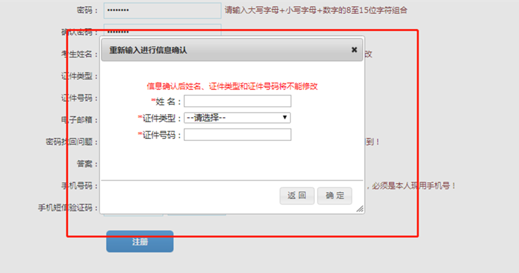 點擊【注冊】按鈕,進入考生注冊頁面,如下圖所示: