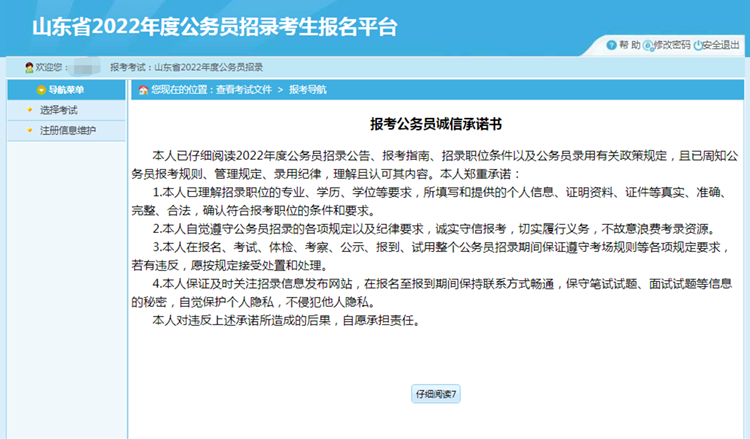 點擊【接受】按鈕,進入查看報考公務(wù)員誠信承諾書頁面: