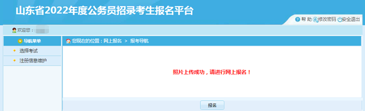 考生照片上傳成功后,點擊【報名】按鈕,進入選擇考試頁面: