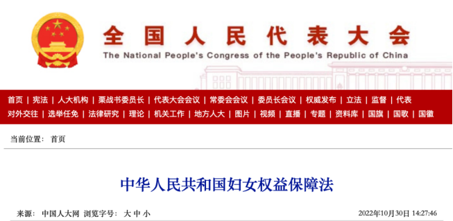2023.1.1施行:中華人民共和國(guó)婦女權(quán)益保障法(最新修正)