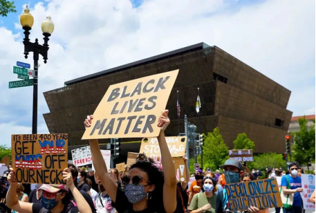 2020年6月,大批民眾游行經(jīng)過非裔美國人國家博物館,抗議少數(shù)族裔在美國社會(huì)中遭受的不公待遇。