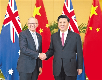 習近平指出,中澳關系曾長期走在中國同發(fā)達國家關系前列,值得雙方珍惜。過去幾年,中澳關系遇到困難,這是我們不愿看到的。中澳兩國同為亞太地區(qū)重要國家,應該改善、維護、發(fā)展好兩國關系,這不僅符合兩國人民根本利益,也有利于促進亞太地區(qū)和世界和平與發(fā)展。