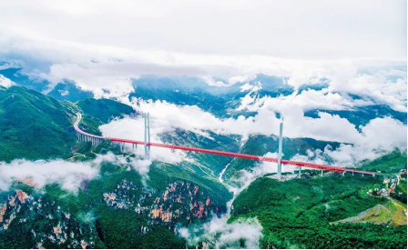 新時代十年的偉大變革具有里程碑意義。十年來,我國建成世界最大的高速鐵路網(wǎng)、高速公路網(wǎng),機場港口、水利、能源、信息等基礎(chǔ)設(shè)施建設(shè)取得重大成就。圖為2016年底開通的世界第一高橋貴州北盤江大橋。人民視覺龔小勇/攝