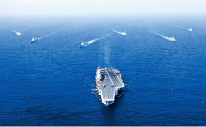 新時代十年,人民軍隊貫徹習(xí)近平強軍思想,大抓實戰(zhàn)化軍事訓(xùn)練,現(xiàn)代化水平和實戰(zhàn)能力顯著提升,中國特色強軍之路越走越寬廣。圖為2018年4月18日,執(zhí)行遠(yuǎn)海訓(xùn)練任務(wù)的遼寧艦編隊在西太平洋海域組織編隊運動訓(xùn)練。新華社發(fā)胡鍇冰/攝