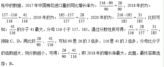 問題:2017-2020年中國棉花進口量同比增長最快的年份是:( )