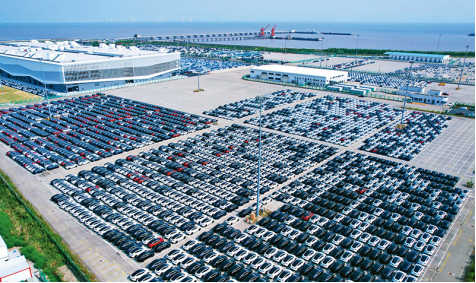 2022年以來,伴隨著我國汽車企業(yè)競爭力、產(chǎn)品力的增強(qiáng),以及海外需求的增長,我國汽車出口延續(xù)上升勢頭。圖為2022年8月13日,上海自貿(mào)區(qū)臨港新片區(qū)陸域一類口岸開放碼頭——南港碼頭,排列整齊的汽車整裝待發(fā)。人民圖片計(jì)海新/攝