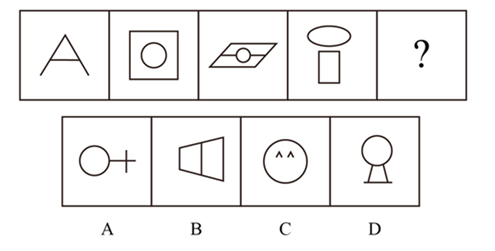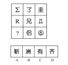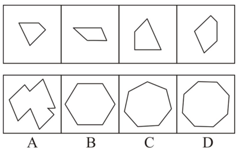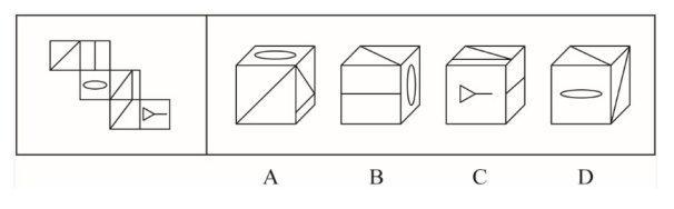 題:邊四個(gè)圖形中,只有一個(gè)是由左邊的四個(gè)圖形拼合(只能通過上、下、左、右平移)而成的,請(qǐng)把它找出來:( )