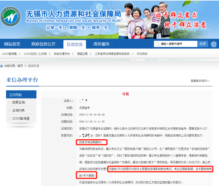 就有考生在無(wú)錫人社局網(wǎng)站上咨詢了是否延期,得到了官方在線回答: