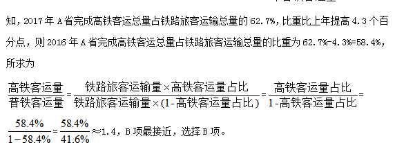 問題:2016年,A省高鐵客運量約是普鐵(除高鐵外的鐵路)客運量的多少倍?( )