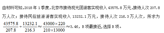 問題:2018年1季度,北京市休閑觀光農(nóng)業(yè)項目中接待觀光園游客實現(xiàn)次均收入約是民俗旅游的多少倍?( )