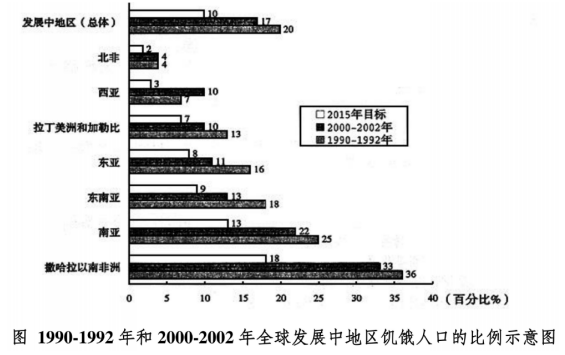 【答案】C【解析】根據(jù)材料可知,南亞地區(qū)1992年總?cè)丝跀?shù)為15億,1992-2002年該地區(qū)人口年均增長率為2%,則2002年南亞地區(qū)饑餓人口為15×