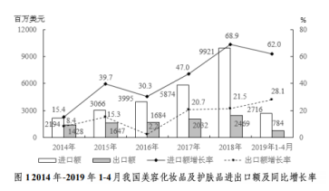 問題:2014-2018年,我國美容化妝品及護膚品進口額占進出口總額的比重最高的是:( )