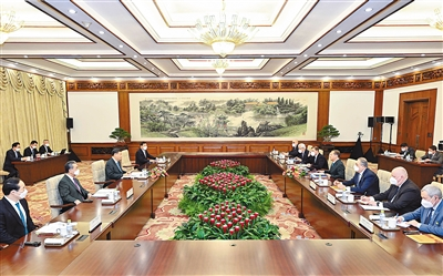 本報北京12月21日電12月21日,中共中央總書記、國家主席習近平在釣魚臺國賓館會見應中國共產(chǎn)黨邀請訪華的俄羅斯統(tǒng)一俄羅斯黨主席梅德韋杰夫。