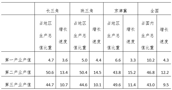 表 2010年三大經(jīng)濟圈產(chǎn)業(yè)結(jié)構(gòu)及增長速度(%)