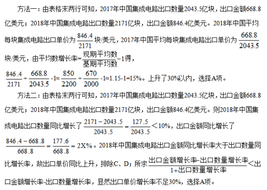問題:2018年中國平均每塊集成電路出口單價比上年:( )