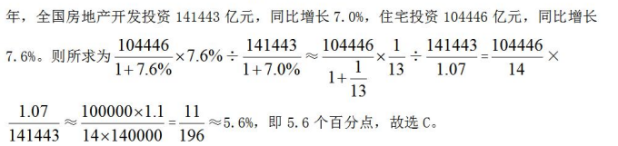 問題②:2020年,住宅投資拉動全國房地產(chǎn)開發(fā)投資增長多少個百分點?( )