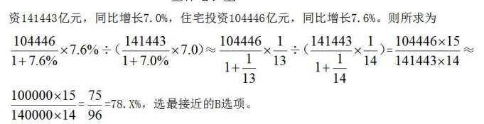 【例1】2020年,全國房地產(chǎn)開發(fā)投資141443億元,同比增長7.0%,比上年回落2.9個百分點。其中,住宅投資104446億元,同比增長7.6%,比上年回落6.3個百分點。