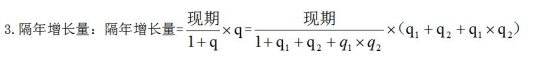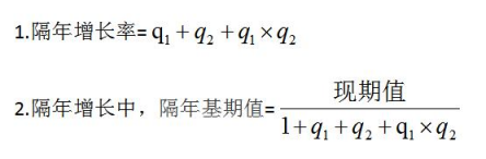 什么是隔年增長:現(xiàn)期與基期之間隔了一個時間點,去求解增長的相關(guān)問題就是隔年增長?,F(xiàn)期與基期之間的時間點稱為間期,現(xiàn)期的增長率用