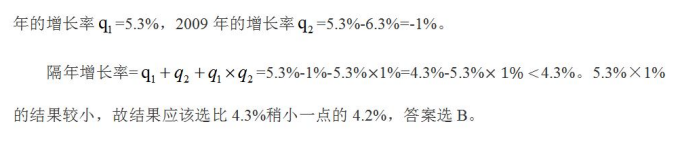 通過以上三道例題我們可以了解到隔年增長的一些知識點。首先是隔年增長率的求解,其次是隔年增長里求基期值,最后求隔年增長量。最后還是想給大家強調(diào)一下,隔年增長里的