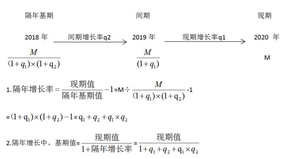 此問題求的是2020年比2018年的增長率,中間隔了一年(2019年),這就是隔年增長率。