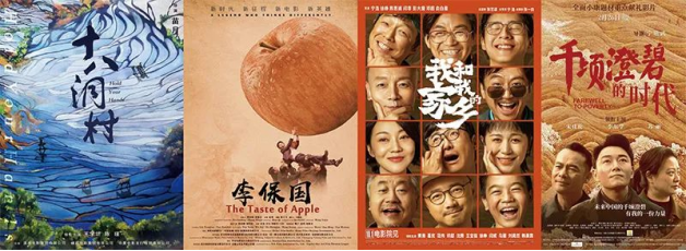 書寫美好中國(guó)故事,用銀幕禮贊偉大時(shí)代?!妒硕创濉贰ⅰ独畋?guó)》、《我和我的家鄉(xiāng)》、《千頃澄碧的時(shí)代》等電影扎根鄉(xiāng)土,回望脫貧攻堅(jiān)戰(zhàn)的感人事跡和先鋒人物,實(shí)現(xiàn)了主流價(jià)值與電影藝術(shù)的完美融合。圖為相關(guān)電影海報(bào)。中國(guó)文聯(lián)供圖